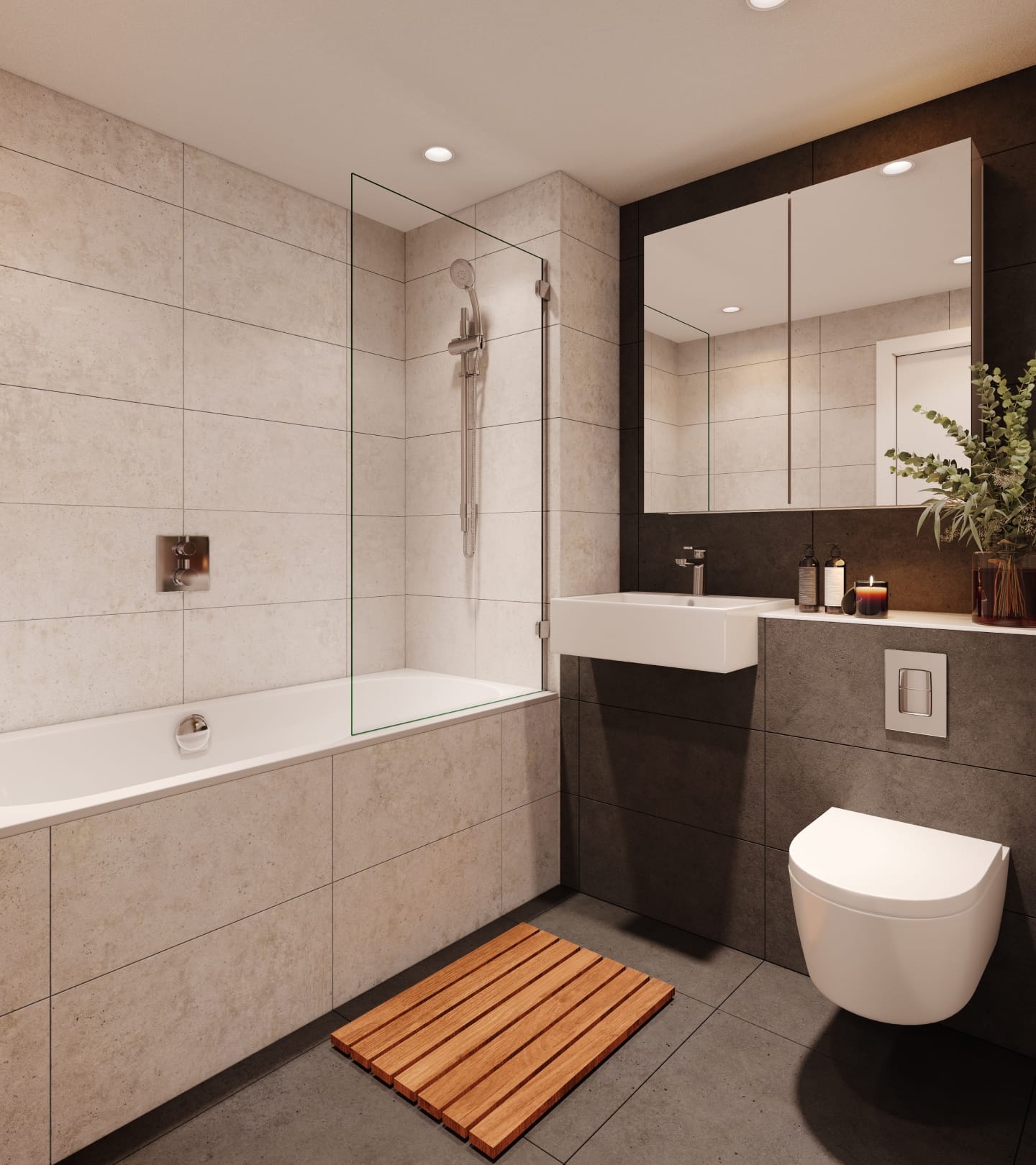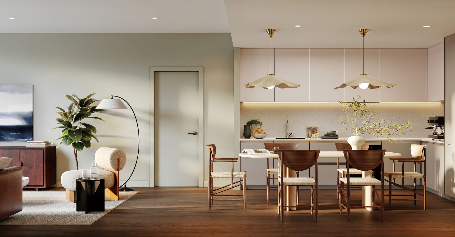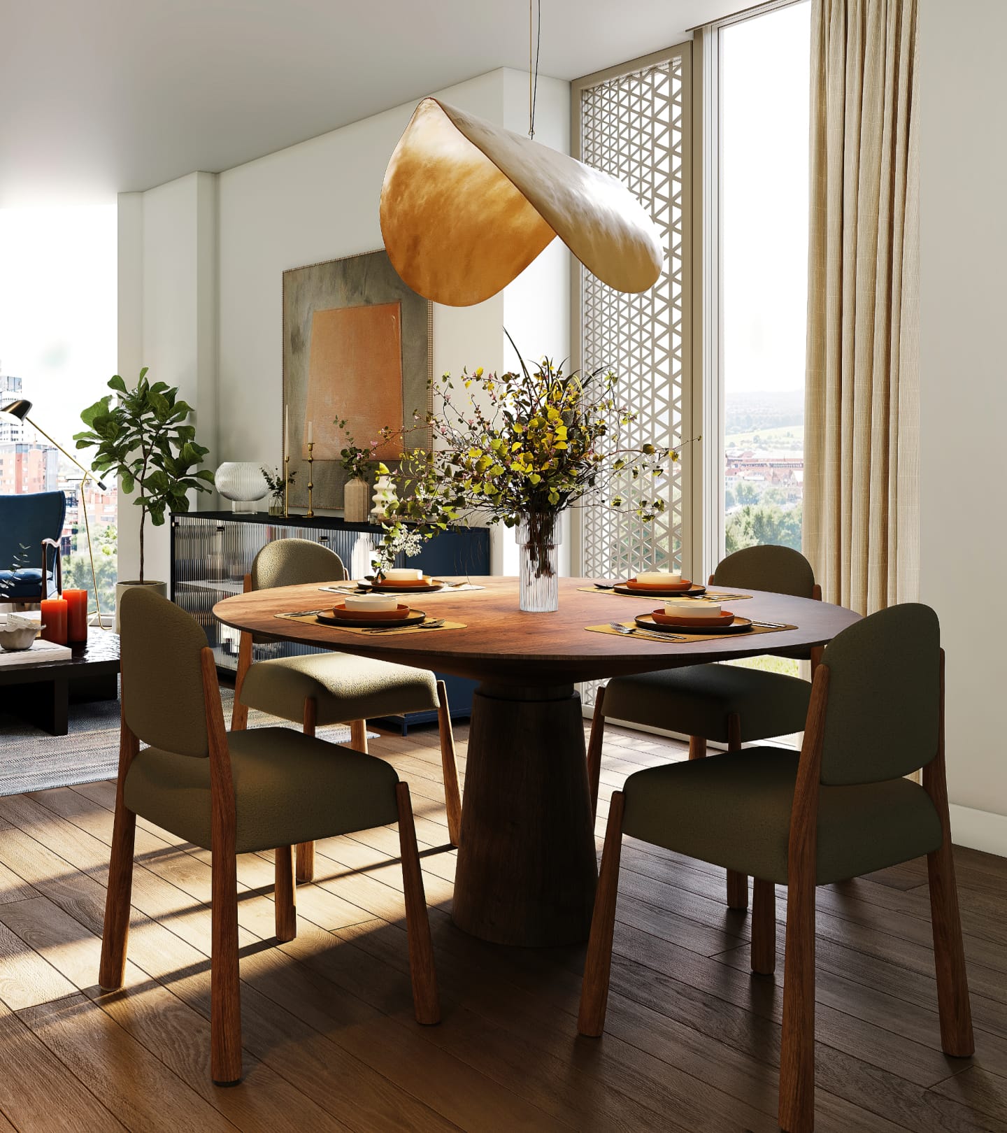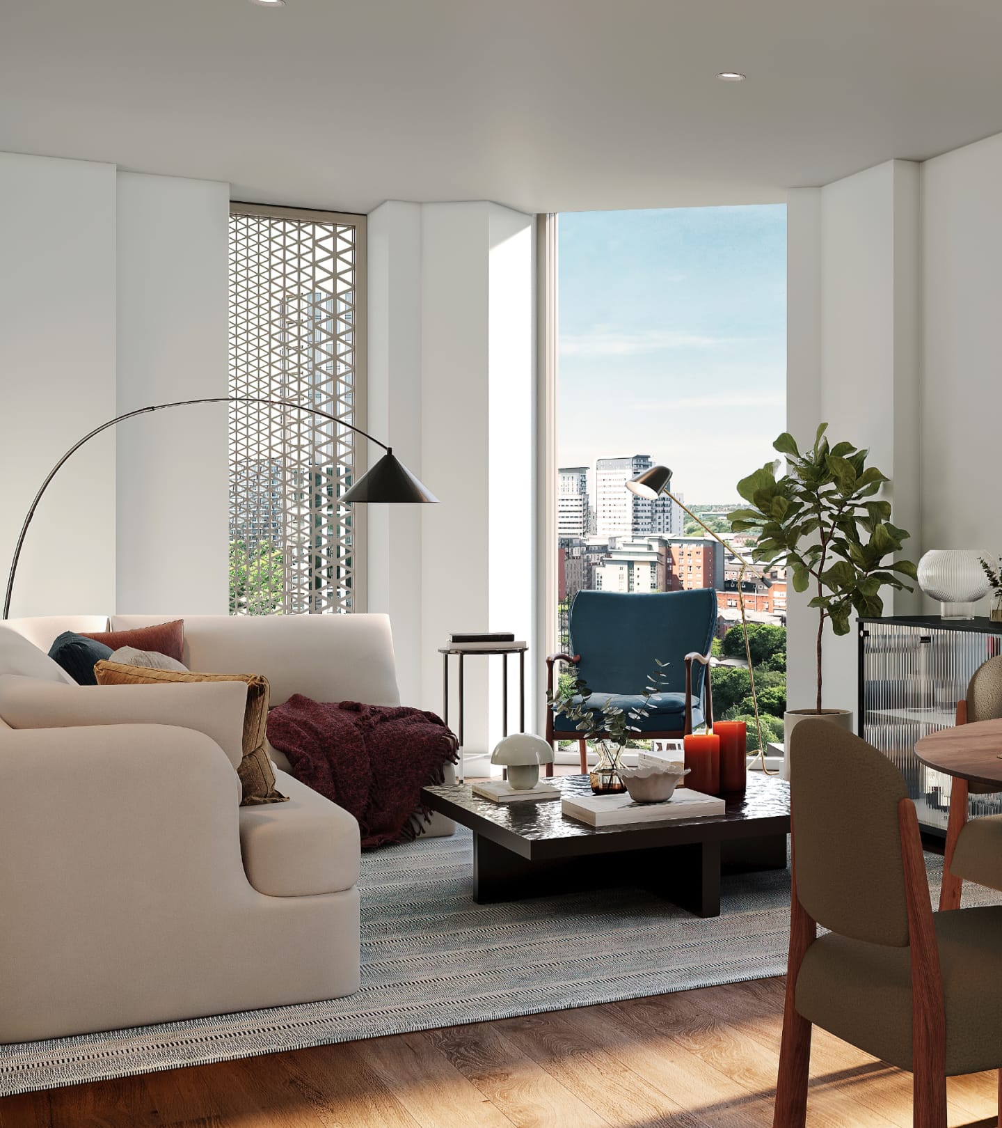 Apartments offer contemporary finishes in a neutral palette, so you can make your place your own. The majority of homes have dual-aspect views, with extra-large windows looking onto green spaces and the city.