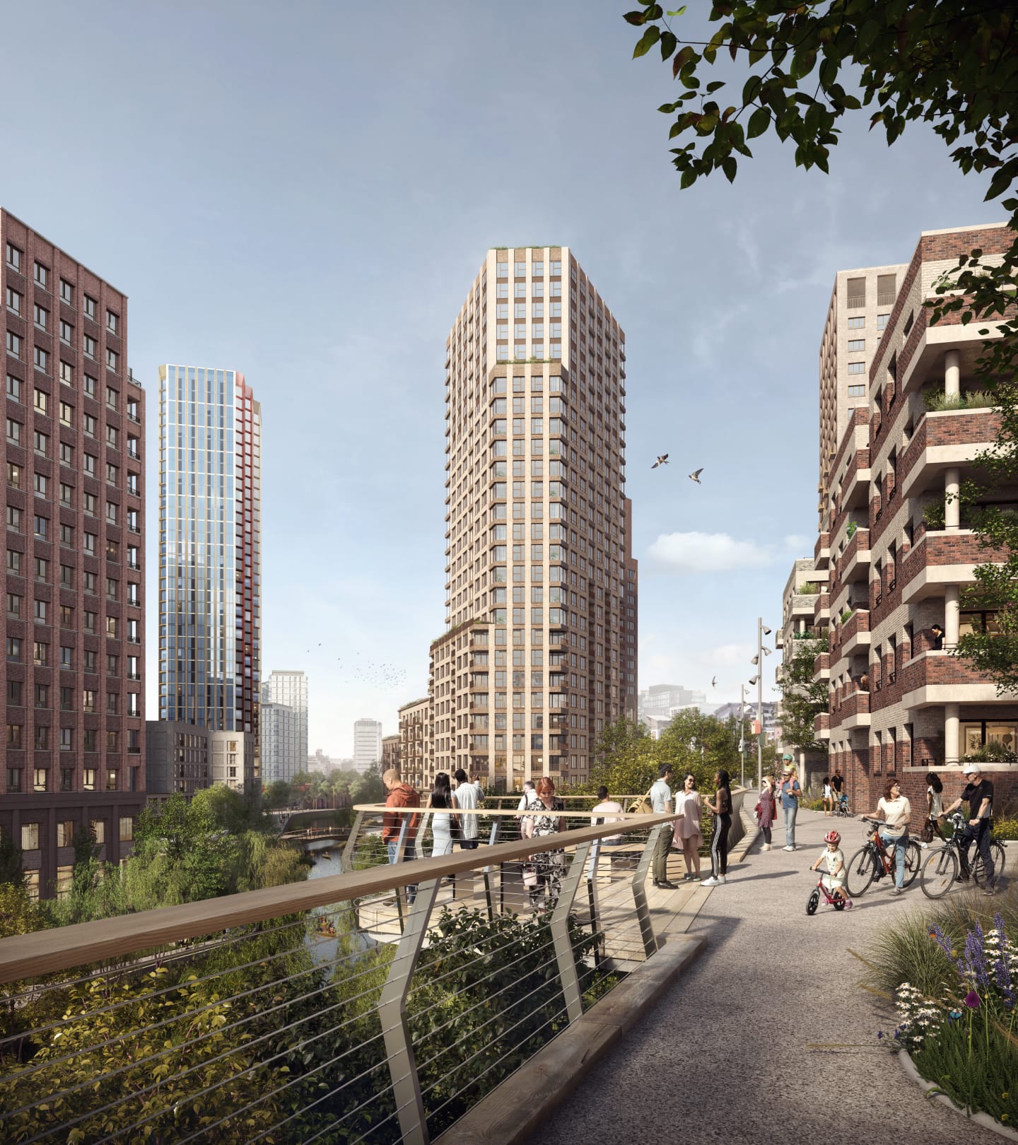 The neighbourhood will add over 2,000 homes across nine buildings, consisting of 1, 2 and 3-bedroom apartments, duplexes and townhouses. All beginning at the riverside, welcoming residents from 2025 to a new urban lifestyle and the start of a 113-acre City River Park.